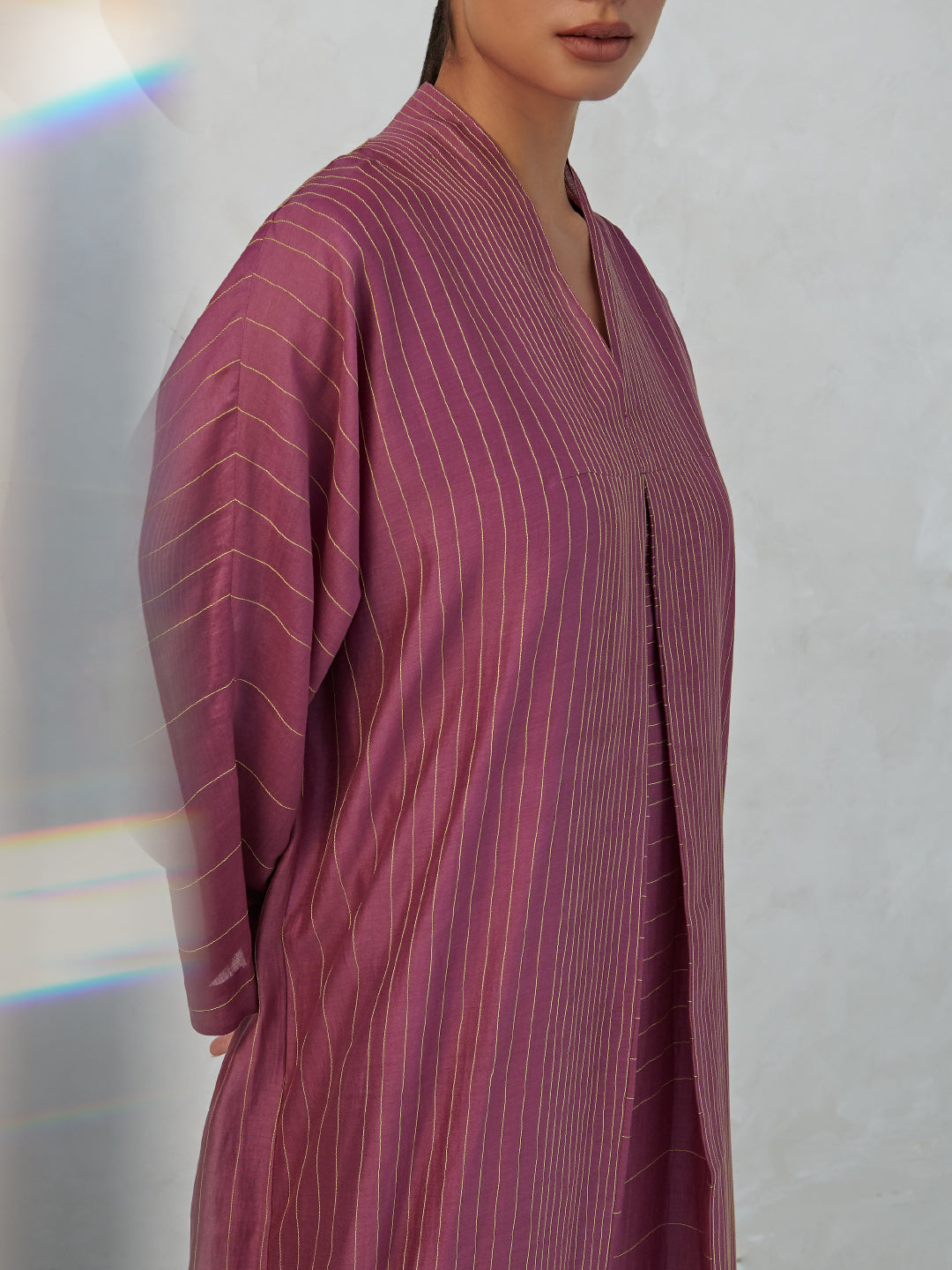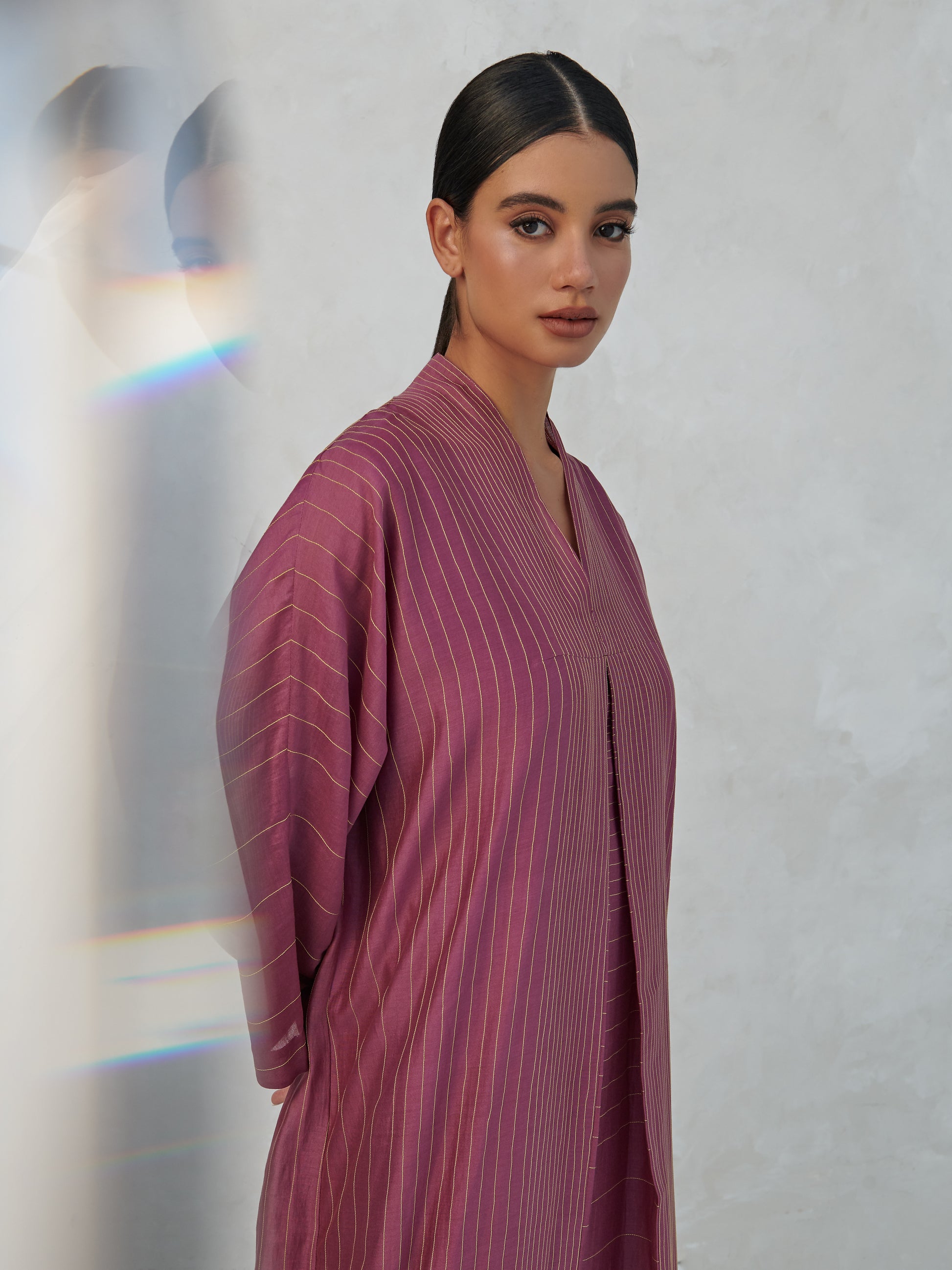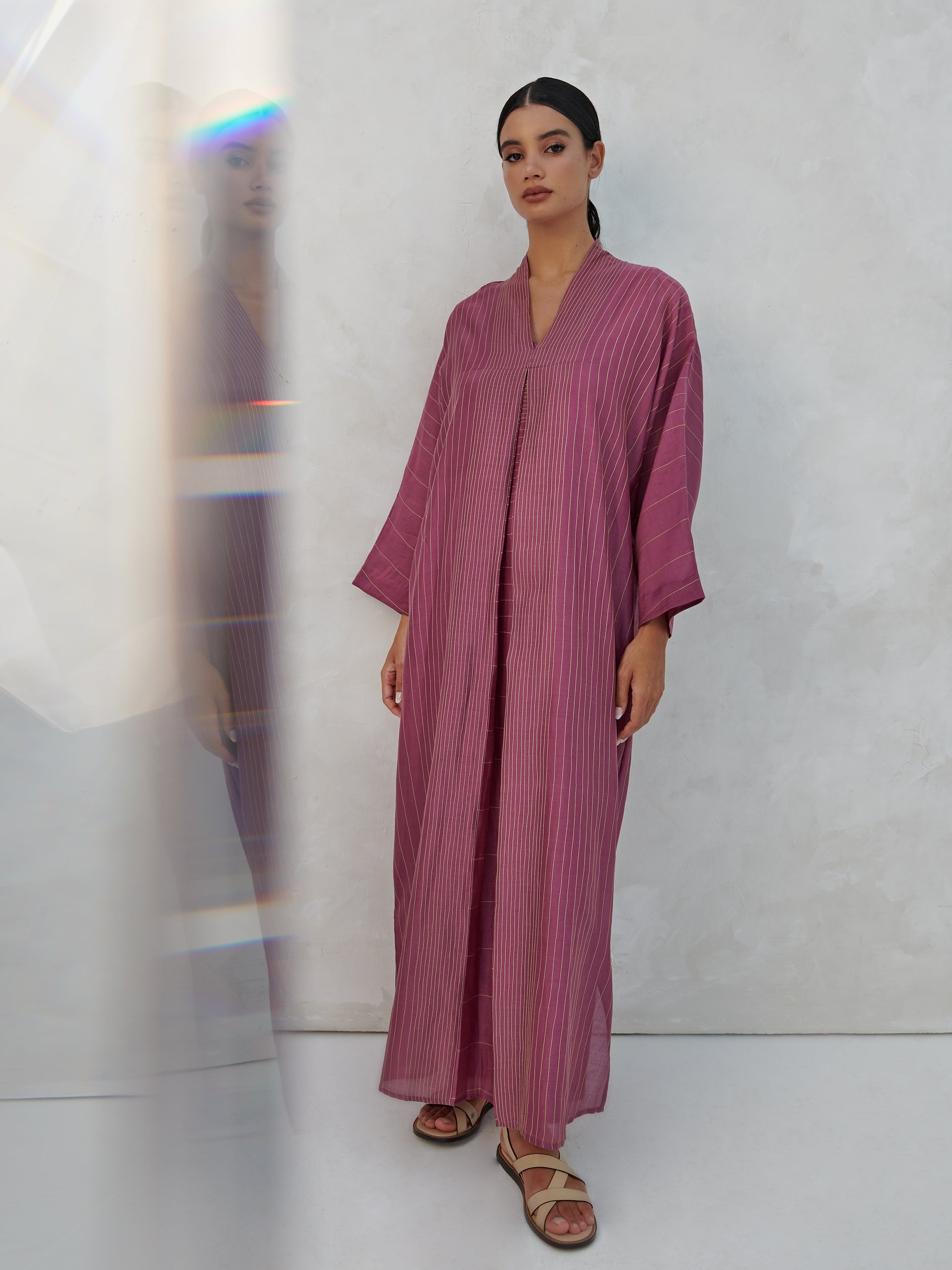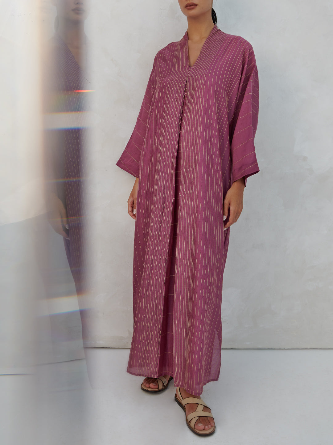 A silk-cotton blend kaftan with ombre lines embroidery in lime