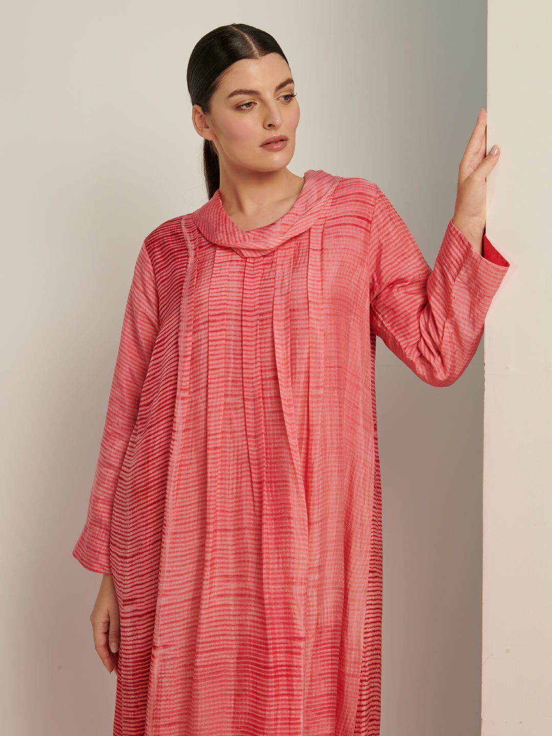 A kaftan silk shabori print with cowl neckline