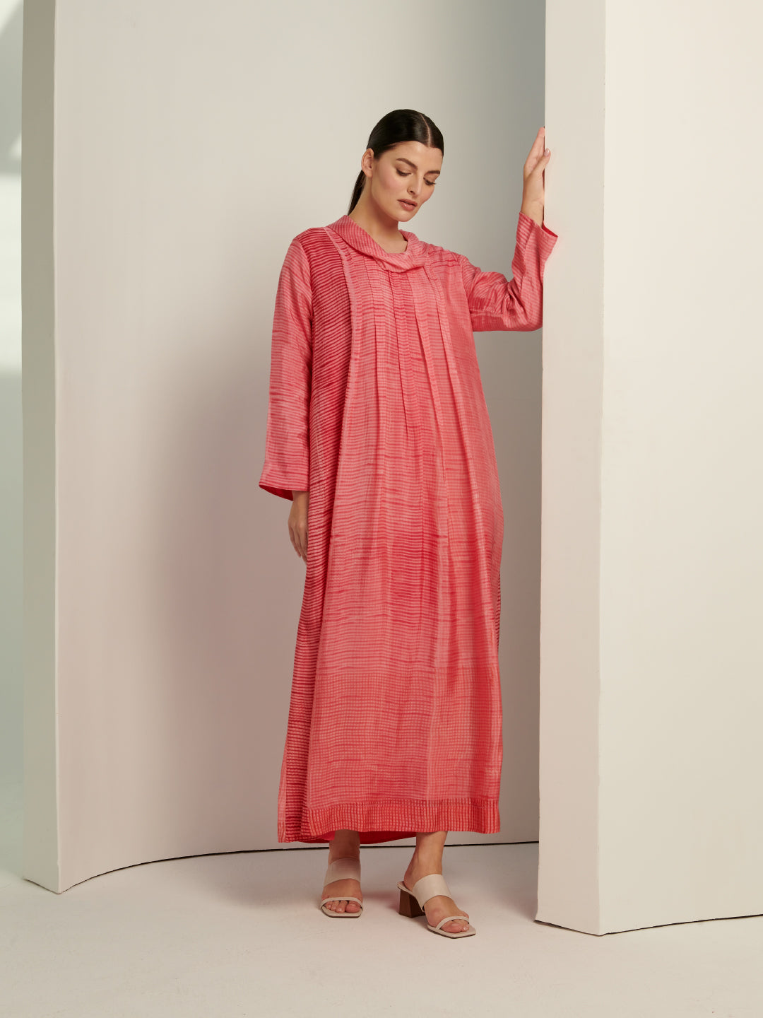 Pink Shabori Print Kaftan