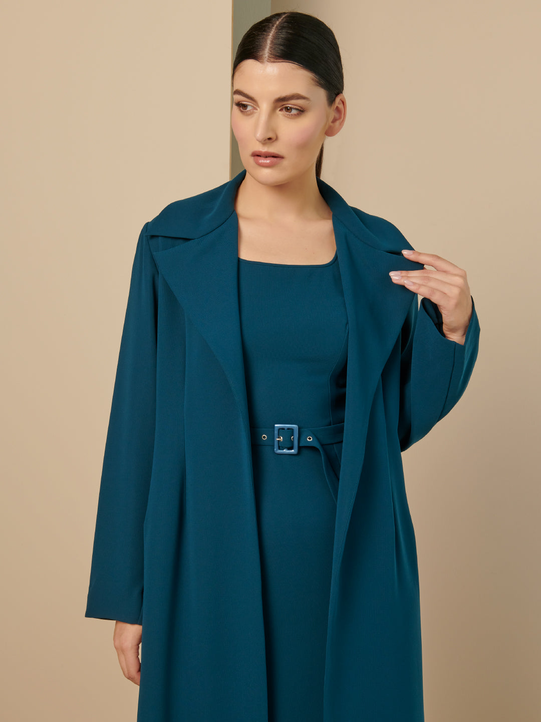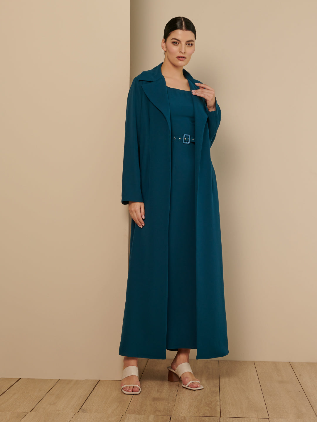Teal Coat Set Abaya with Belt