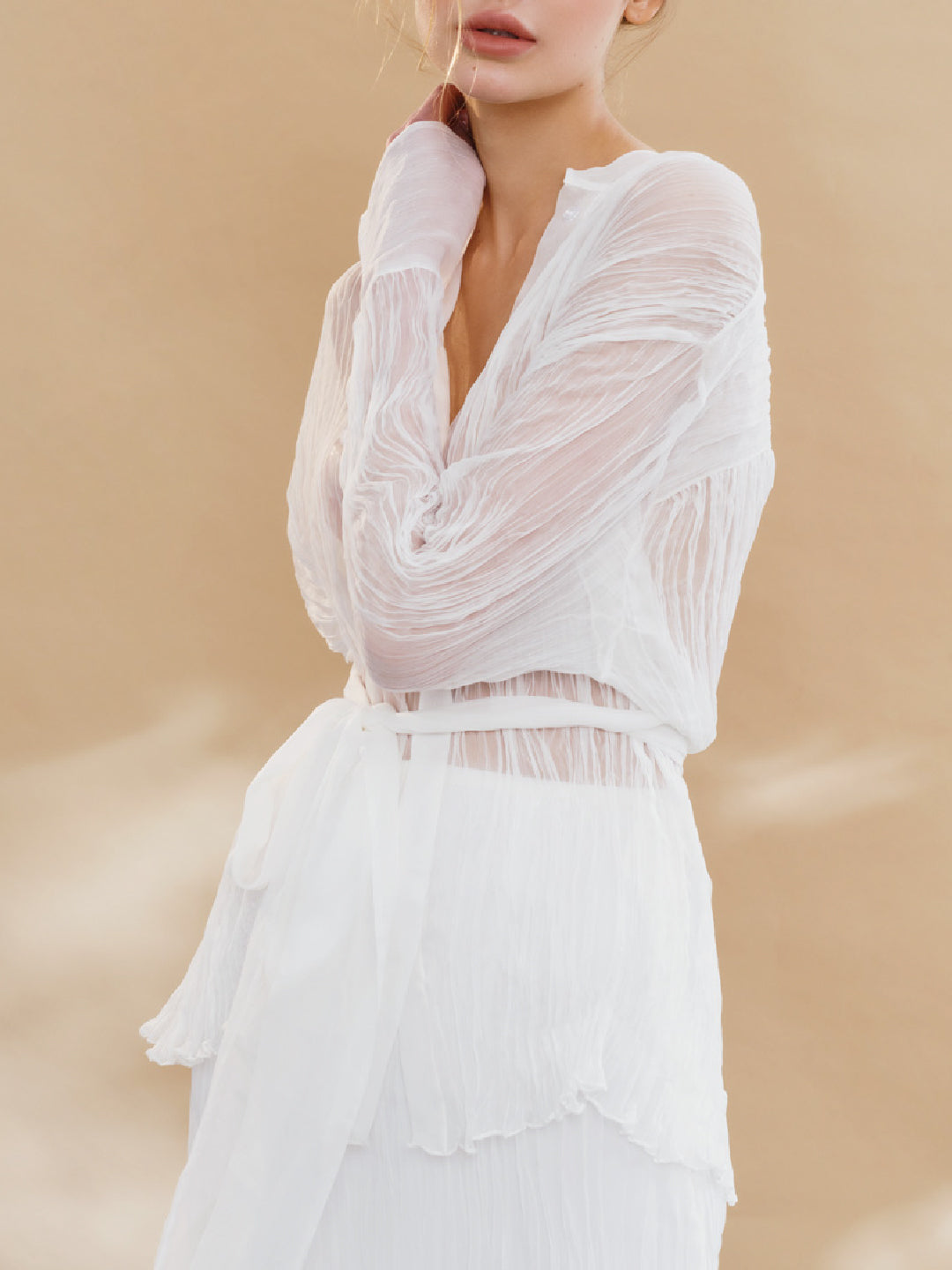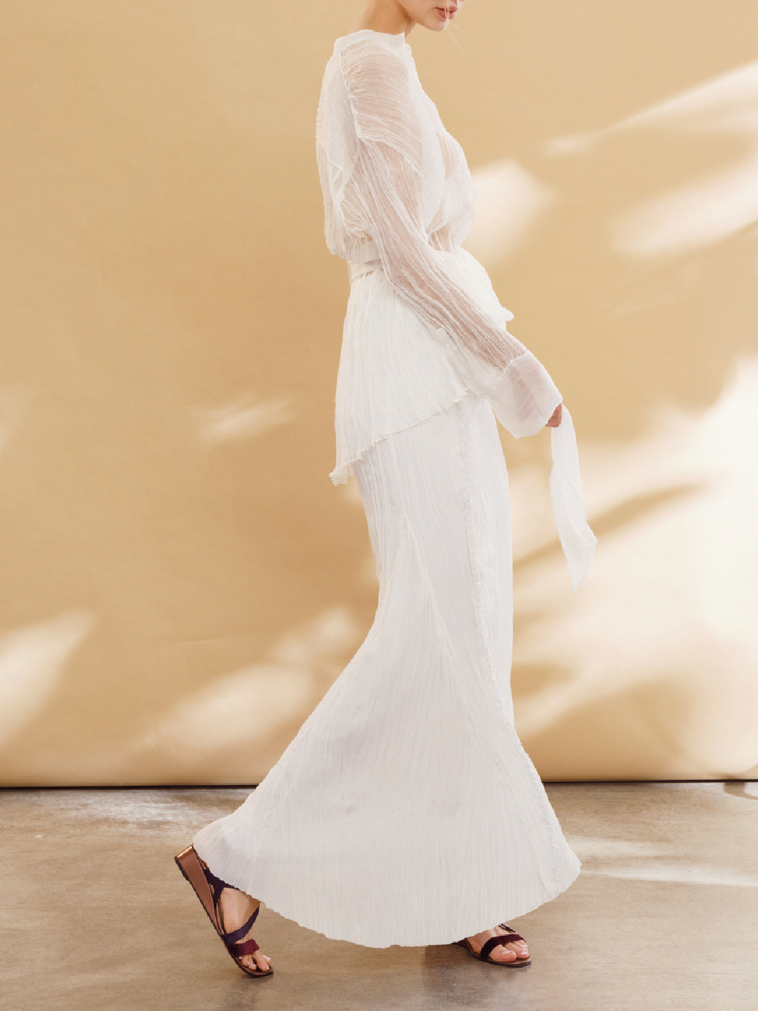 Wrinkle Italian Chiffon Top Paired with Crepe Skirt