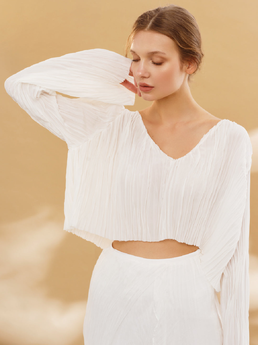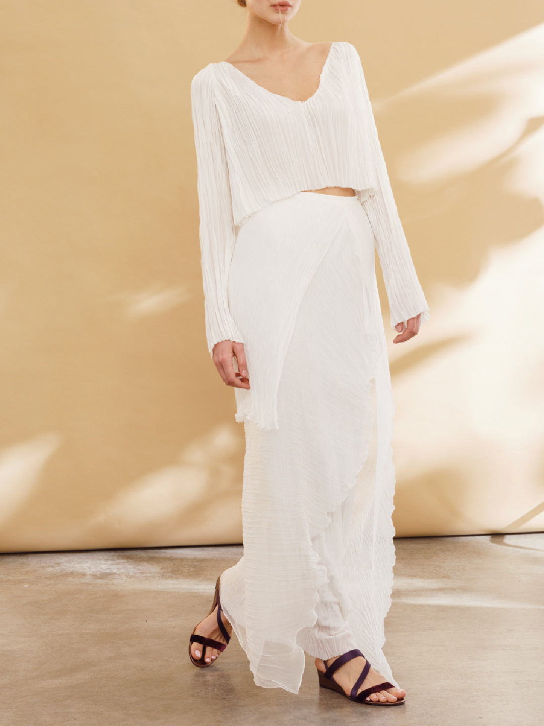 Wrinkle Italian Crepe Top with Mix of Crepe and Chiffon Skirt